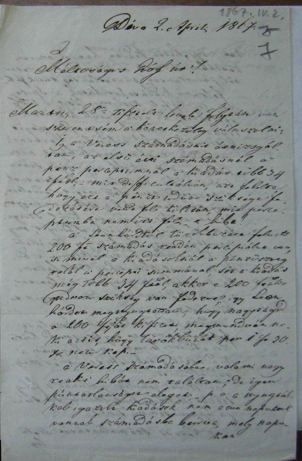 Déva 2. Aprilis 1867.