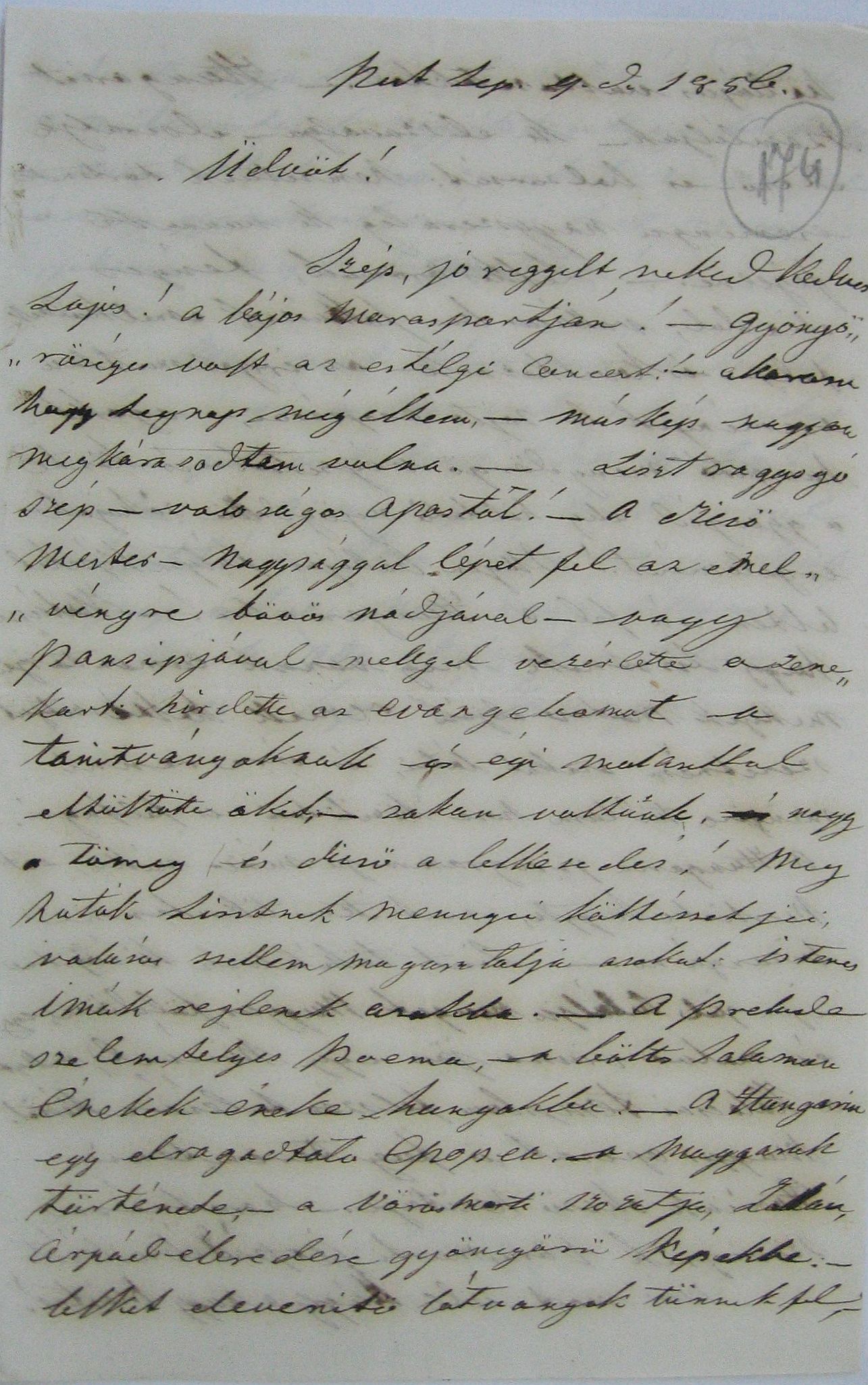 [Emendált, modernizált változat] Pest Sep. 9d. 1856