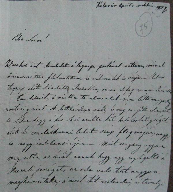 [75r] Kolosvár Aprilis 5dikén 1827. Édes Laim!