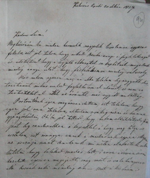 Megkőszőnőm ha minden harmadik negyedik levelemre egyszer fellelsz, azt jol tudva hogy neked Bécsbe annyi a' foglalatoságod és időtőltésed hogy a' legjobb akkarattal se kaphatnál magadnak mindég annyi időt hogy firkálásaimra[1] mindég válaszoly.