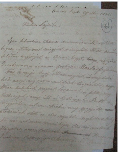 [468r] Orsova Sept. 27.dikén 1845. Kedves Lajos! Igen kelemetesen utazva szerencsésen ide értűnk tegnap estve; most minjárt mennyűnk Török Orsovára, delútán megjárjuk az Alion hegyet: honap menjűnk Trenkovárra, és annan gözhajon Nándor fejérvárra. 1 Az írásjel ugyanazzal a tintával javítva.