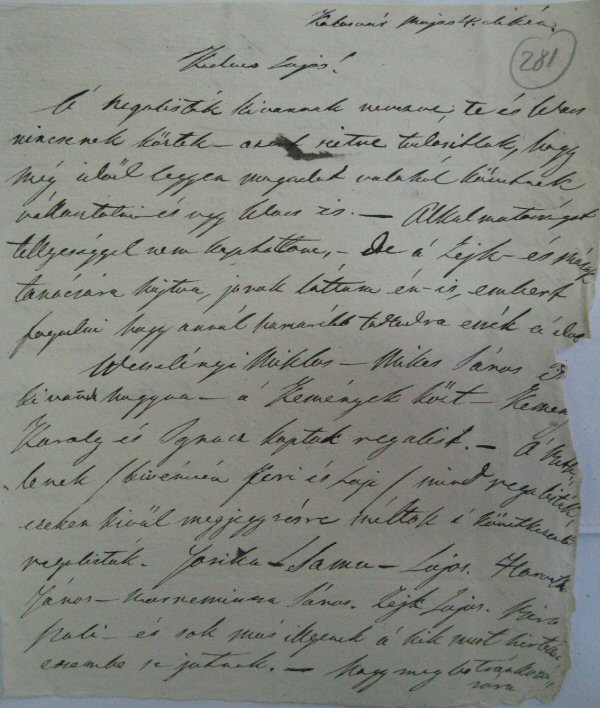 Kedves Lajos! A' Regalisták ki vannak nevezve; te és Wass nincsenek kőztek — az[ert][1] sietve tudositlak, hogy még időd legyen magadat valahól kővetnek vállasztatni — és ugy Wass is. — Alkalmatosságot tellyeséggel nem kaphattom, — de a' Zejk — és mások tanácsára hajtva, jonak láttam én-is, embert fogadni hogy annál hamarébb tudtodra essék a'dol[og][2]