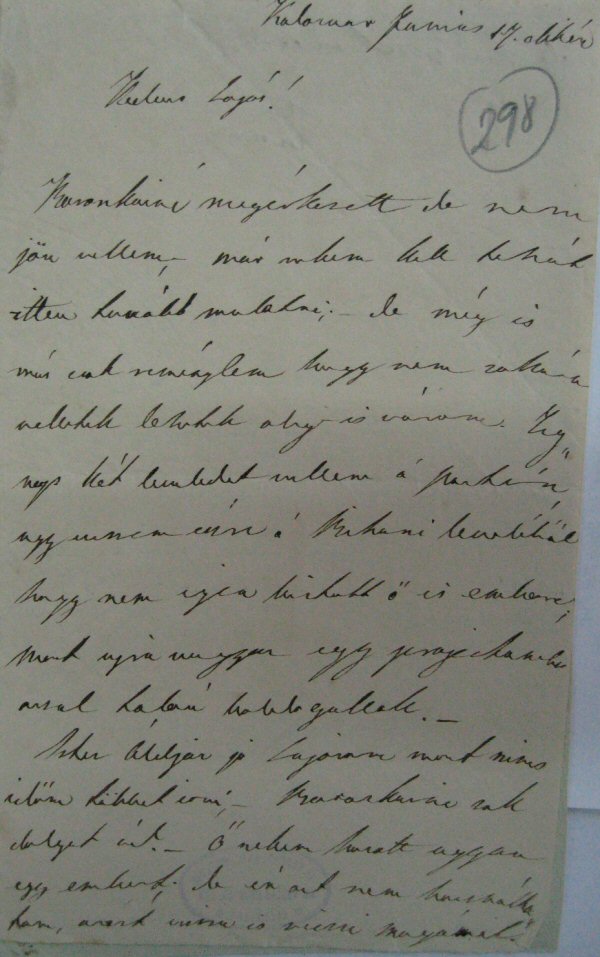 [298r] Kolosvár Junius 17. dikén Kedves Lajos! Baronkainé megérkezett de nem jön vellem, — már nekem kell tehát itten tovább mulatni; — de még is már csak reménylem hogy nem sokára veletek lehetek alig is várom. Tegnap két leveledet vettem a' postán ugy veszem észre a' Bihari leveléből hogy nem igen biztatt ő is emberre; mert ujra vagyon egy projecturába azzal talán boldogullok. — A képhez tartozó szöveg! |