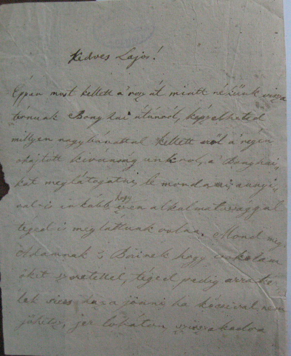 Kedves Lajos! Éppen most kellett a' rosz út miatt nékűnk vissza térnunk Bonyhai útúnról, képzelheted millyen nagy bánattal kellett eről a' régen ohajtott kivánságunkrol, a' Bonyhaikat meglátogatni, le mondani; annyival-is inkább, hogy[1] ezen alkalmatossággal téged is meg láttunk volna. Mond meg Adamnak 's Birinek hogy csokolam őket szeretettel, téged pedig arra kérlek siess haza jönni, ha kócsival nem jőhetsz, jer loháton, szivszakadva [1] Beszúrva: hogy |