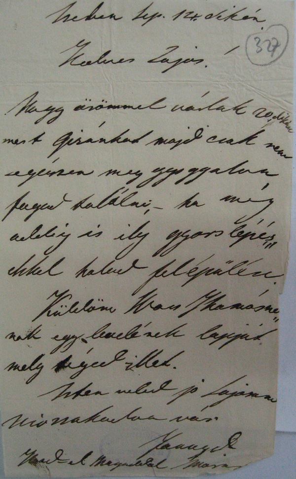 [327r] Szeben Sep. 14.dikén. Kedves Lajos! Nagy örömmel várlak 20.dikán mert Gizánkat majd csak nem egészen meg gyogyulva fogod találni, – ha még addig is ily gyors lépésekkel halad felépűlése.