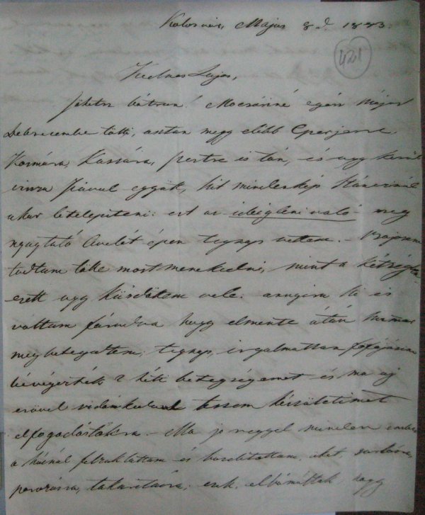 Jöhetsz bátran! Mocsáriné egész Májost Debrecenbe tölti, asztan megy elébb Eperjesre, Kozmára, Kassára, Pestre is tán, és ugy kerül vissza Fiuvul együtt, kit mindenkép Stánczinál akar letelepiteni: ezt az — ideigleni valo — meg nyugtató levelét épen tegnap vettem. — Bajosan tudtam tölle most menekedni, mint a kétségben esett ugy küsdöttem vele: annyira ki is voltam fáradva hogy elmente útán ham[m]ar meg betegedtem; tegnap, irgalmatlan föfájásim bévégezték 2 heti betegségemet és ma uj erövel vidám kedvel[1] teszem készületimet elfogadástokra. — Ma jo reggel minden ember a háznál felzaklattam és buzditottam, üket, porlásra, porozásra, takaritásra; ezek, elbámúltak nagy [1] Az „el” ugyanazzal a tintával javítva. |