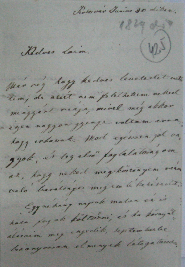 Már rég hogy kedves leveledet vettem; de azért nem felelhettem neked mingyárt reája, mivel még akkor igen nagyon gyenge voltam arra, hogy irhassak. Most egésszen jol vagyok, és leg első foglalatosságom az, hogy neked megkőszőnyem reám való barátságos meg emlékezésedet. |