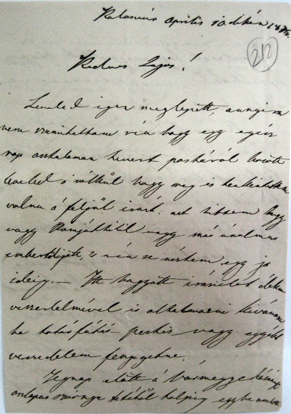 [212r] Kolosvár Aprilis 10. dikén 1846.[1] Kedves Lajos!
