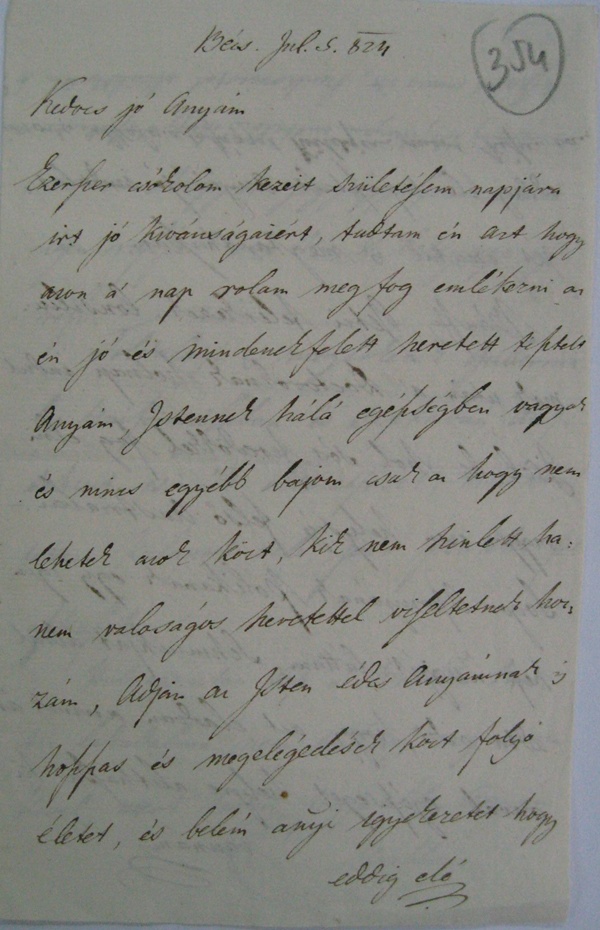 Gyulay Lajos Kácsándy Zsuzsannának, 1824. 07. 05. (Bécs) |