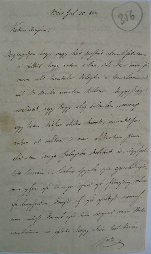 Gyulay Lajos Kácsándy Zsuzsannának, 1824. 07. 20. (Bécs) |